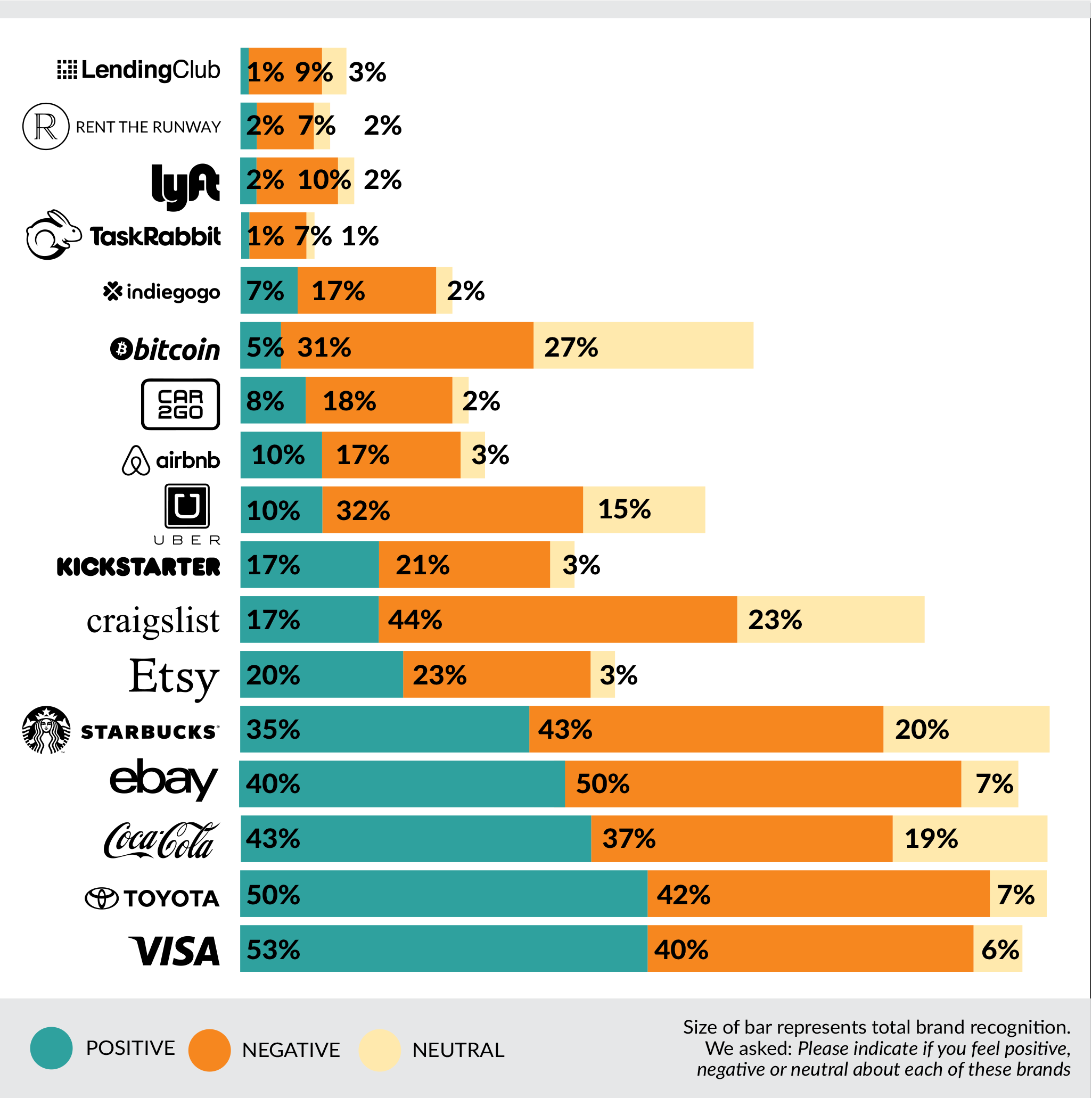 Many leading companies of the collaborative economy have as much brand recognition as the biggest traditional brands.